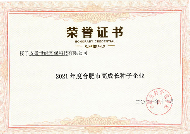 2021年合肥市高成長企業(yè)認定結果正式出爐啦!近日,合肥市科技局委托各區(qū)管委會,對認定企業(yè)發(fā)放了認定證書。安徽世綠環(huán)保榮獲2021年合肥市高成長種子企業(yè)。