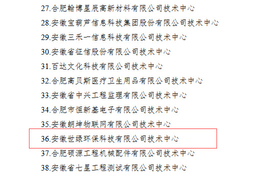 安徽世綠環(huán)??萍加邢薰救脒x2022年合肥市企業(yè)技術(shù)中心擬認(rèn)定名單