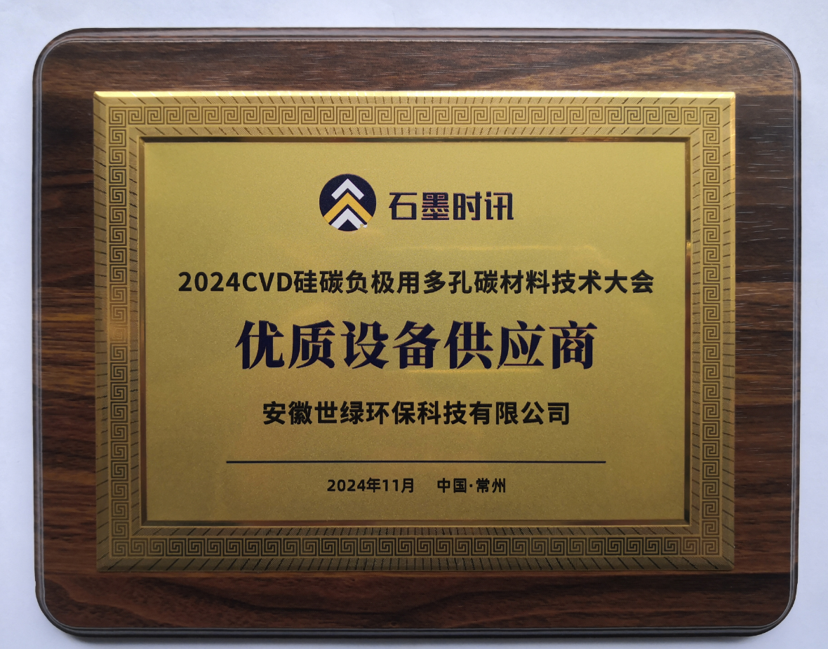 在大會(huì)的頒獎(jiǎng)典禮上,安徽世綠環(huán)保科技有限公司憑借其出色的產(chǎn)品性能和服務(wù)質(zhì)量,被授予“優(yōu)質(zhì)設(shè)備供應(yīng)商”稱號(hào)。作為一家專注于環(huán)??萍碱I(lǐng)域的高新技術(shù)企業(yè),安徽世綠環(huán)保在CVD硅炭負(fù)極多孔碳材料的制備設(shè)備研發(fā)方面取得了顯著成就。其生產(chǎn)的設(shè)備不僅具有高效、穩(wěn)定的特點(diǎn),還能夠根據(jù)客戶需求進(jìn)行定制化設(shè)計(jì),滿足了不同客戶對(duì)產(chǎn)品的多樣化需求。